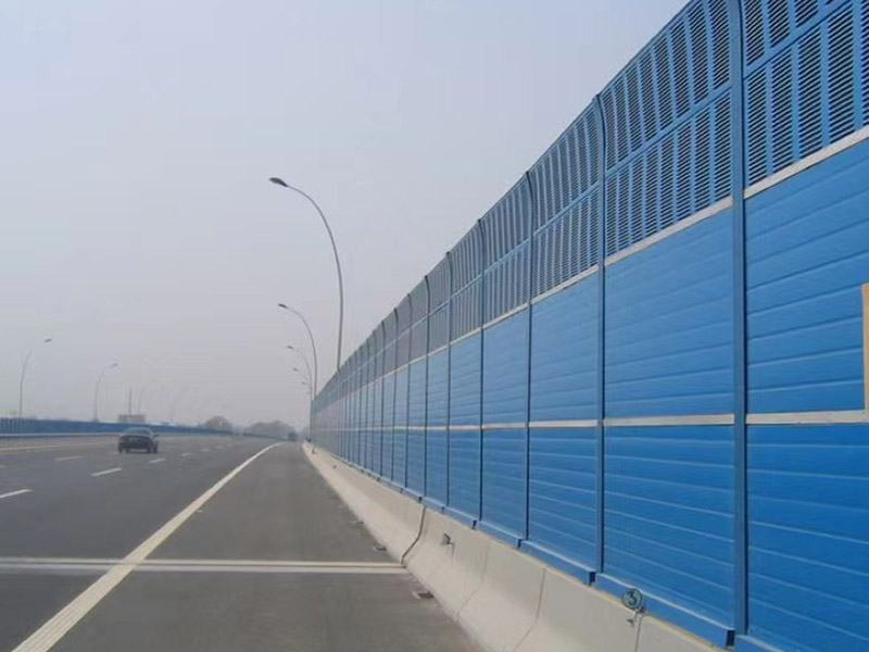 高速公路聲屏障(隔音墻)主要由鋼結構立柱和吸隔聲屏板兩部分組成,立柱是聲屏障的主要受力構件,它通過螺栓或焊接固定在道路防撞墻或軌道邊的預埋鋼板上;吸隔聲板是主要的隔聲吸聲構件,它通過高強彈簧卡子將其固定在H型立柱槽內,形成公路聲屏障(隔音墻)。